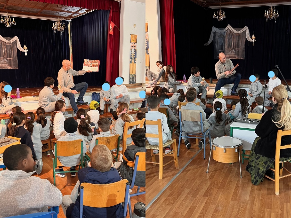 Ο εκπαιδευτικός της Δ΄1 τάξης, Γιώργος Στόγιας, διάβασε κατά τη διάρκεια του διαλείμματος χριστουγεννιάτικες ιστορίες στα παιδιά του σχολείου μας. Τα παιδιά, τρώγωντας το πρόγευμά τους, μεταφέρθηκαν σε κόσμους μαγικούς παρέα με τον Άγιο Βασίλη, τα ξωτικά και τους τάρανδους!
