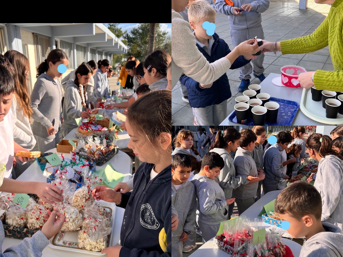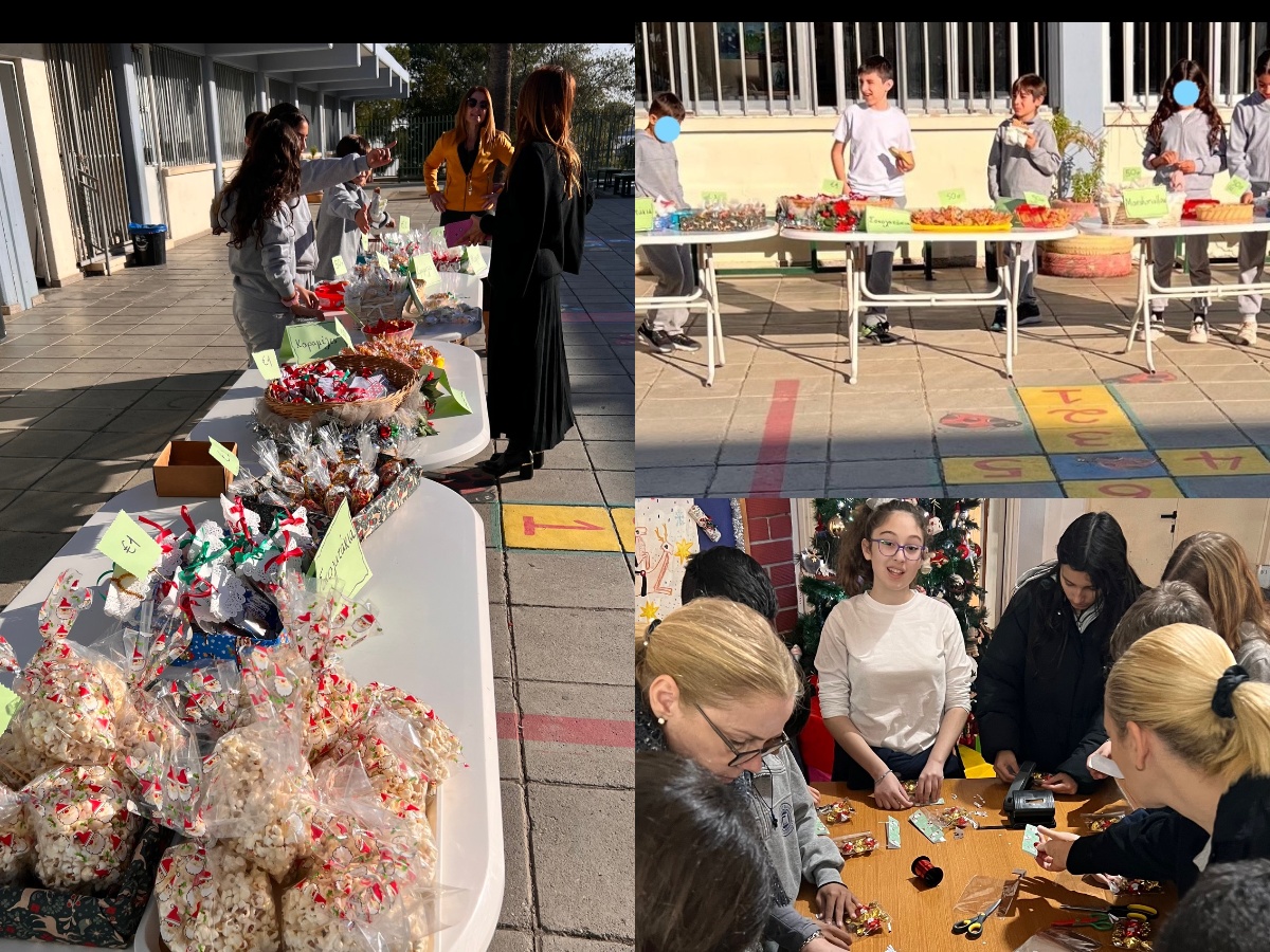 Τα παιδιά των Ε΄και Στ΄ τάξεων με την καθοδήγηση των υπεύθυνων εκπαιδευτικών και της διευθύντριας του σχολείου, οργάνωσαν παζαράκι γλυκών και ζεστής σοκολάτας! Τα παιδιά έφτιαξαν στο μάθημα της Αγωγής Υγείας σοκολατάκια τα οποία συσκεύασαν και πούλησαν στους συμμαθητές και συμμαθήτριές τους. Τα παιδιά του σχολείου, με τη συνοδεία χριστουγεννιάτικης μουσικής, απόλαυσαν σοκολατάκια, ποπ κορν, μάφινς και ζεστή σοκολάτα σε ένα «γλυκό» και χαρούμενο διάλειμμα!!