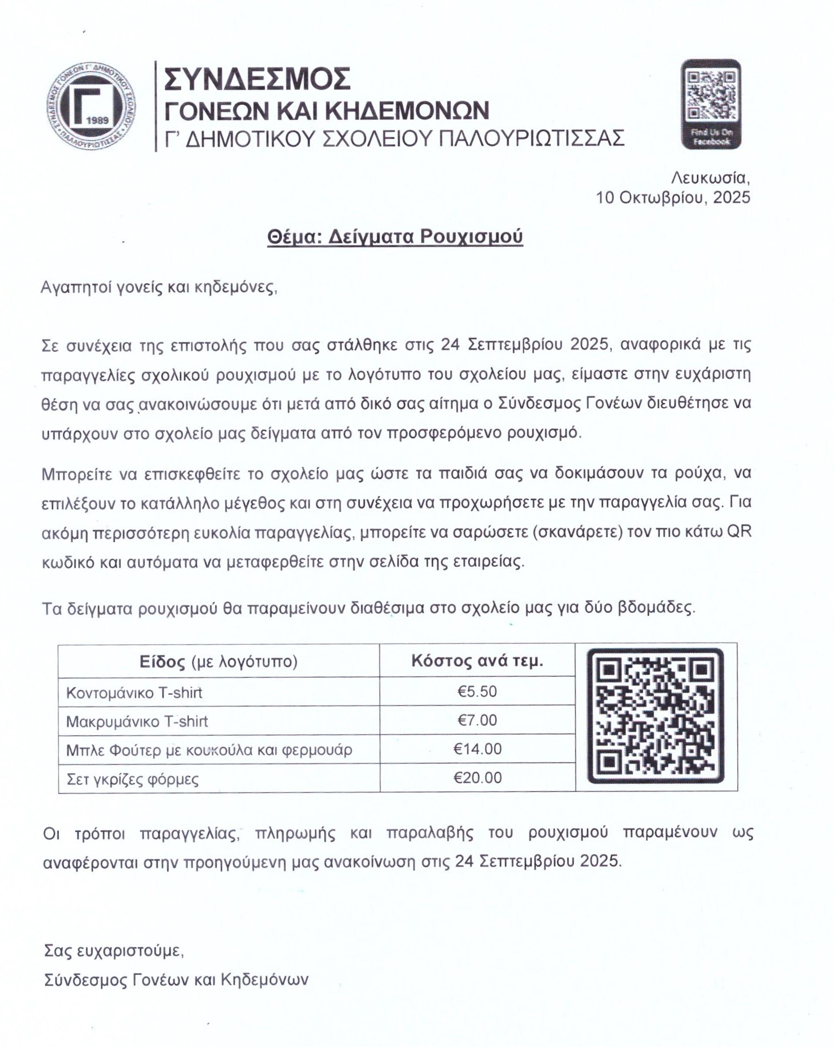 Παραγγελία Ρουχισμού 2024-2025